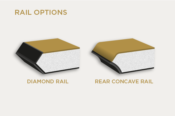 A wider version of the classic crescent, with a corner to corner curb that creates sharper slants at the tail of the board to increase grip during bottom turns.