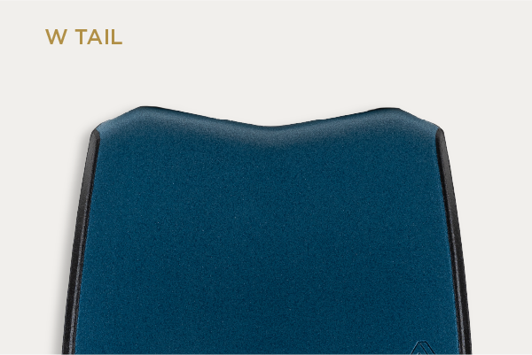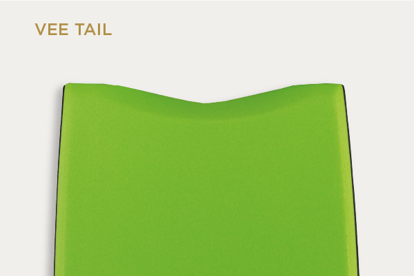 A bevelled Vee Tail, designed for stand-up practice. The W tail creates extra grip in the curl, and gives the board better projection in the bottom of the wave.